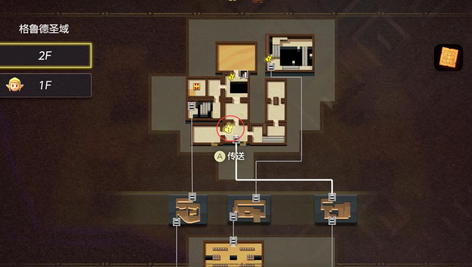 然后可以传送去到格鲁德沙漠后往前面走从小门进去来到【格鲁德圣域】,去【格鲁德圣域-2F】