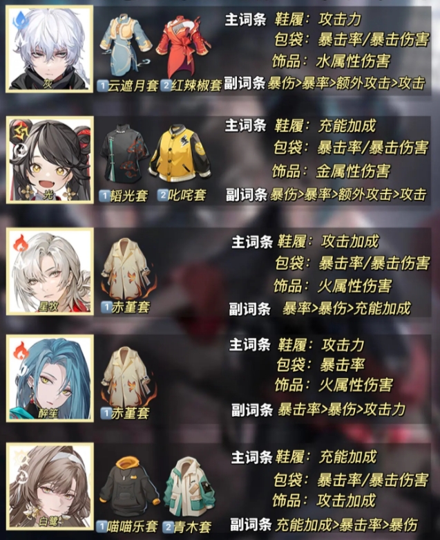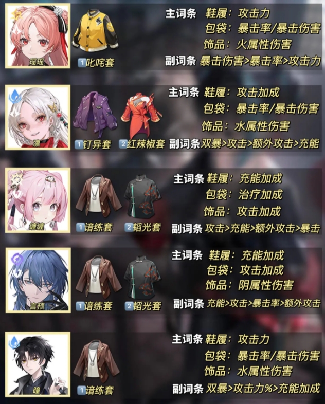 本次为大家带来的是归龙潮中全角色的潮品选择及词条推荐,基本每个角色都会推荐两套潮品,部分角色只有一个最佳潮品套装。