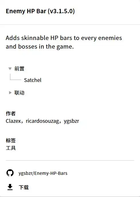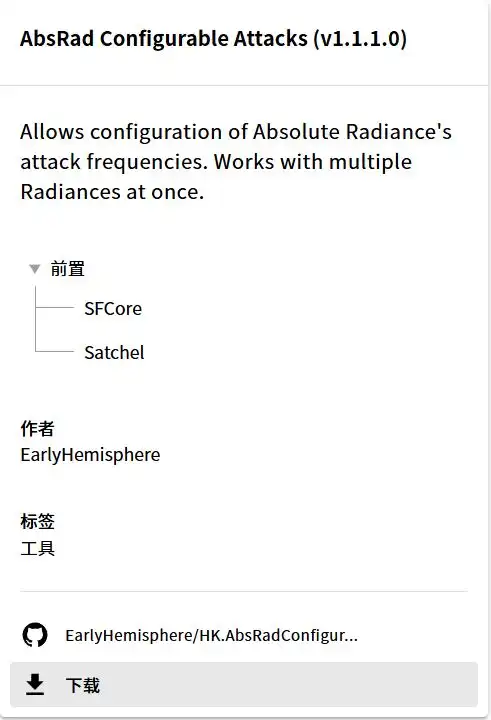 如果你要下载AbsRad Configurable Attacks (v1.1.1.0),还必须额外安装 SFCore 和 Satchel 两个模组。