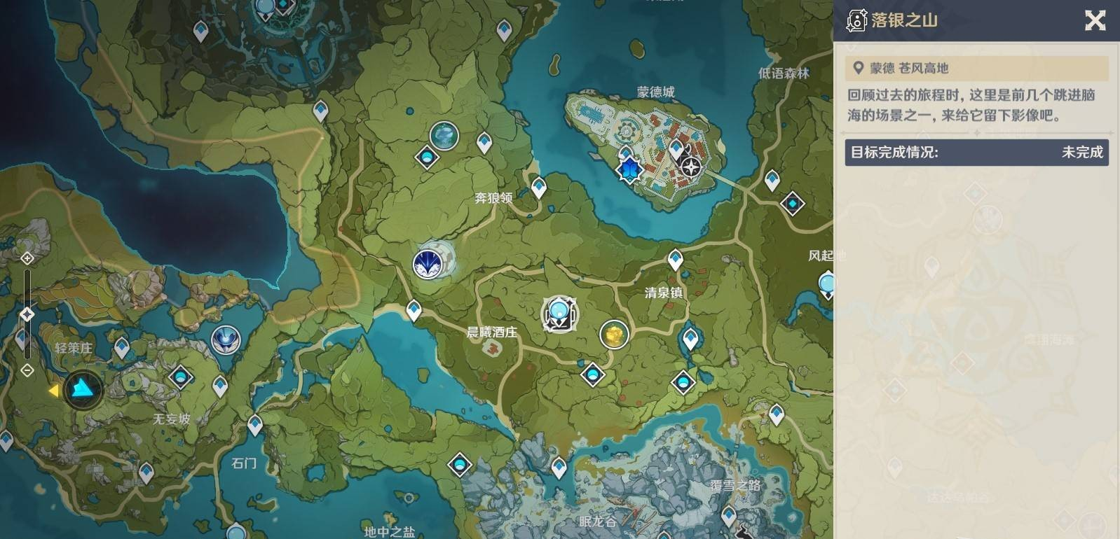 在活动界面点击【落银之山】放大镜,选择【前往留影】。