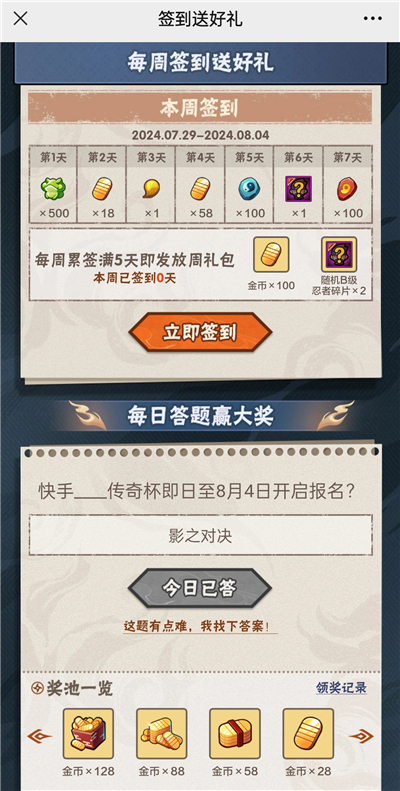 8月2日问题:快手____传奇杯即日至8月4日开启报名?