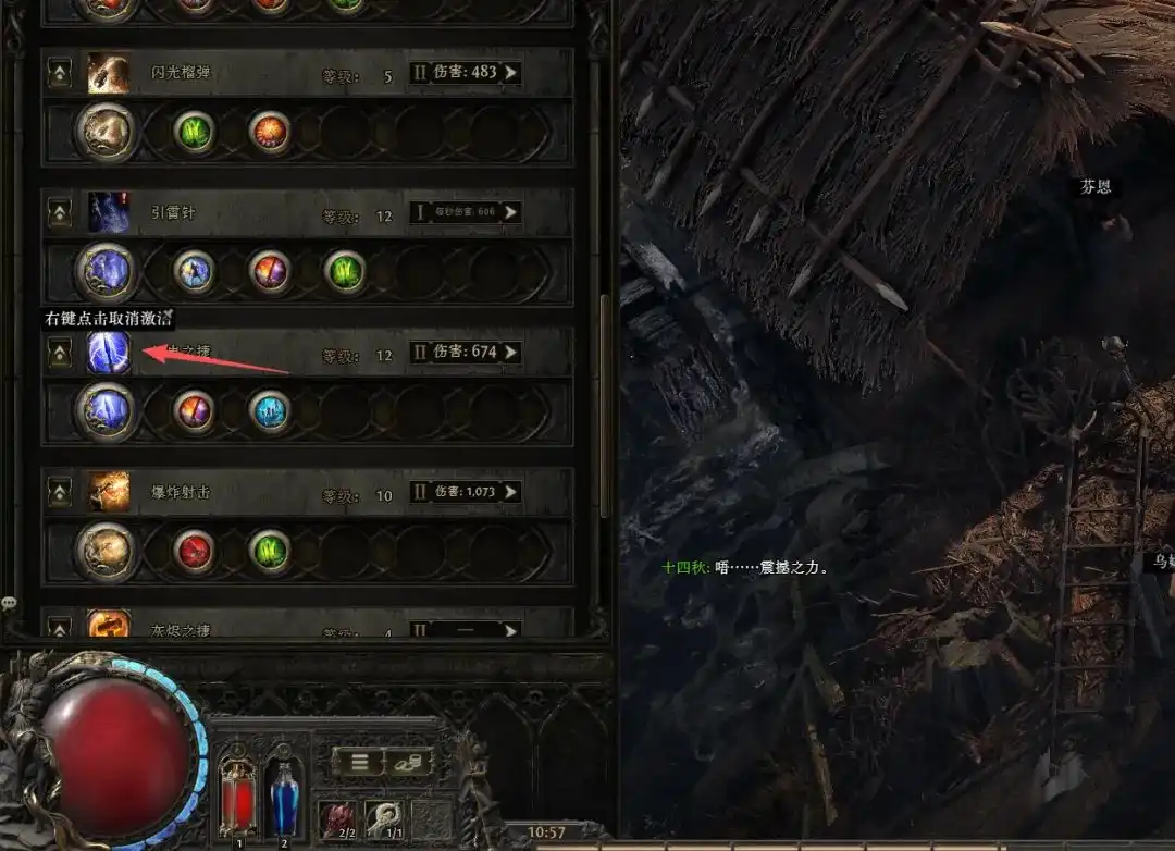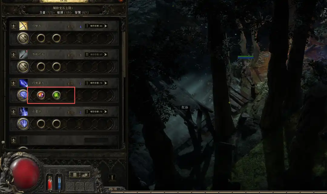 此时别忘了买辅助宝石:快速攻击 + 闪电协调,插在闪电箭上,大幅提升输出效率。