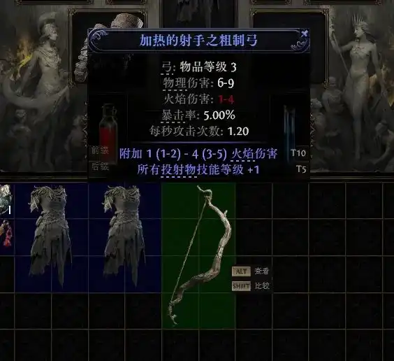 打完看下有没有掉落带“点伤”的武器装备(比如附加火焰/冰霜/闪电/物理伤害),有的话哪怕不是弓,也别浪费,副手戴上增加输出。