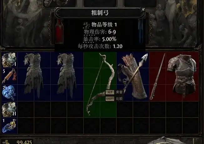 蓝白装备别丢:没用的蓝装黄装拿去卖换金币,白弓可以用【蜕变石 + 增幅石】洗成蓝装,有几率点出极品属性。