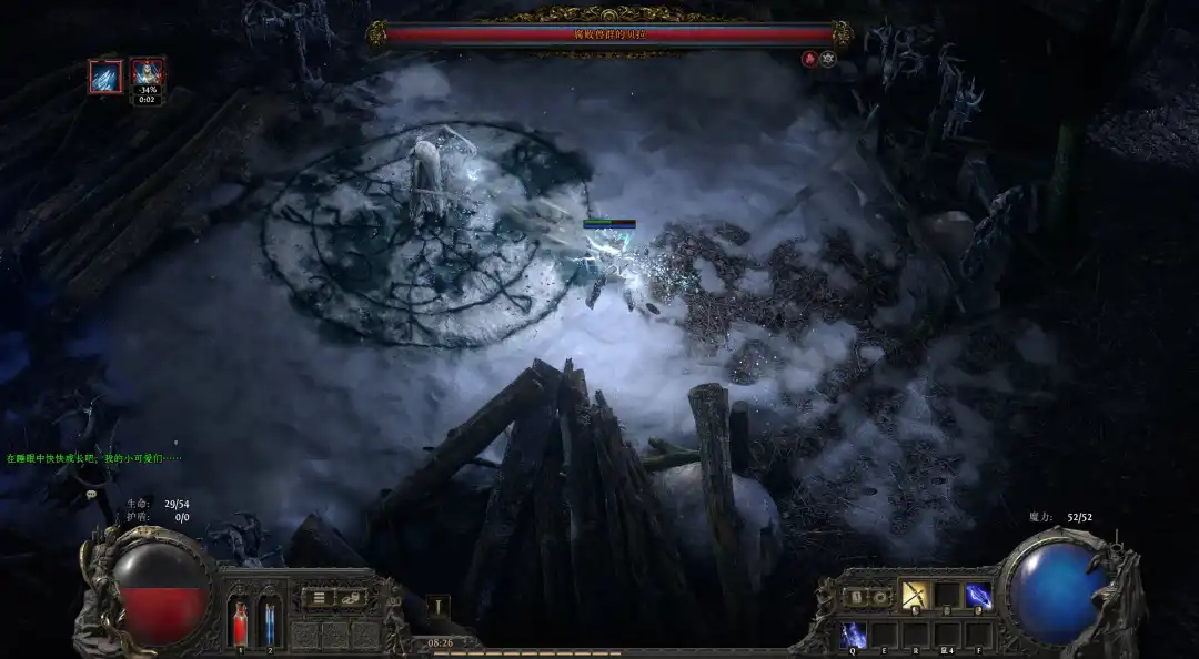 前面要打3个祭坛,才会解锁BOSS战。迷雾之王有两管血,如果你装备太差可能会坐牢。