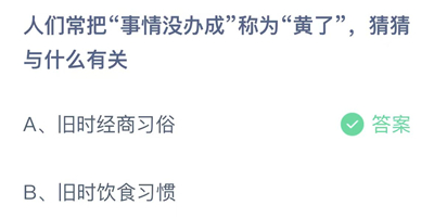 问题一:人们常把“事情没办成”称为“黄了”,猜猜与什么有关