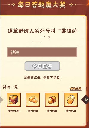 问题答案:铁锤