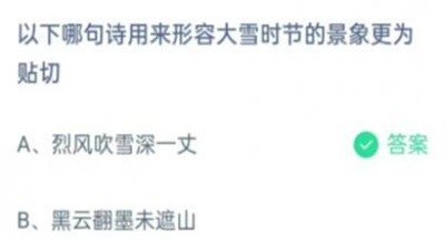 问题二:以下哪句诗用来形容大雪时节的景象更为贴切