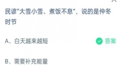 “民谚“大雪小雪、煮饭不息”,说的是仲冬时节”和“以下哪句诗用来形容大雪时节的景象更为贴切”是2023年12月7日支付宝蚂蚁庄园的题目,正确回答后可以获得支付宝蚂蚁森林庄园里的小鸡的培育饲料,而对于近日的题目答案可能小伙伴们还不清楚,那么接下来就让我们一起来了解2023支付宝蚂蚁庄园12月7日答案内容吧。