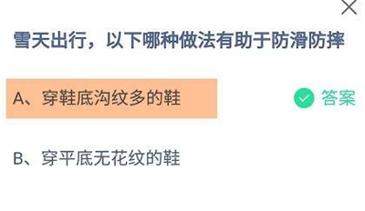 题目2:雪天出行,以下哪种做法有助于防滑防摔?