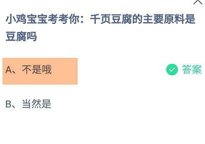 题目1:小鸡宝宝考考你:千页豆腐的主要原料是豆腐吗?