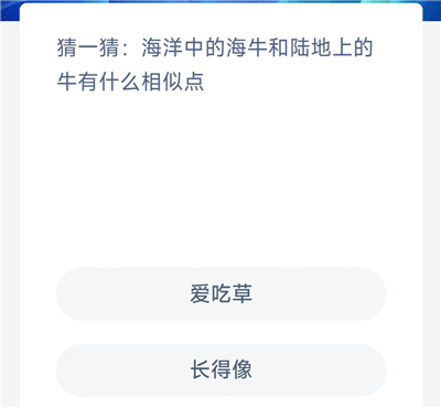 “海洋中的海牛和陆地上的牛有什么相似点?”是2023年10月11日支付宝神奇海洋科普问答题的题目,完成支付宝神奇海洋科问答后我们可以收集相关的碎片,那么接下来就让我们一起来看看支付宝神奇海洋科问答答案最新内容。