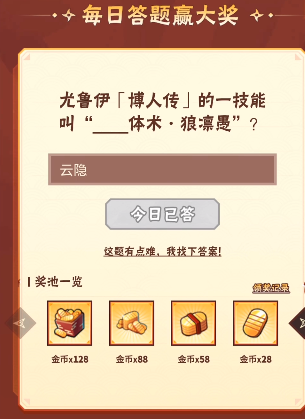 8月29日问题:尤鲁伊「博人传」的一技能叫“___体术·狼凛愚”?