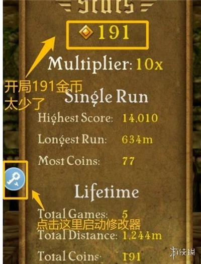 2、接下来在八门神器游戏盒子app内打开要修改的游戏(这里我们以神庙逃亡为例),点击模块并查看你想要修改的游戏数据(例如金币191)并记下来;
