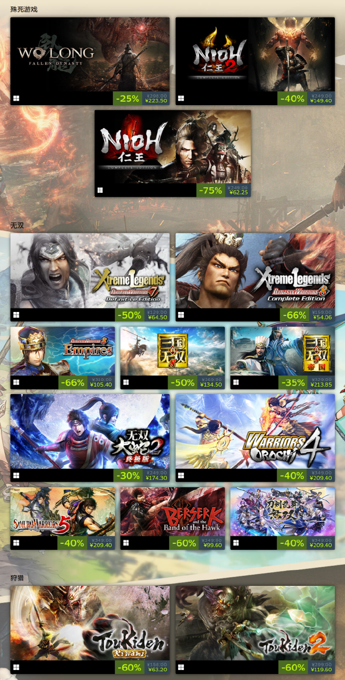 【Steam特惠】光荣特库摩夏日特卖(6月27日1点-7月14日1点),此次特卖持续至Steam夏季特卖结束,正常来说和夏促的价格保持一致,感兴趣的可以考虑提前入手。