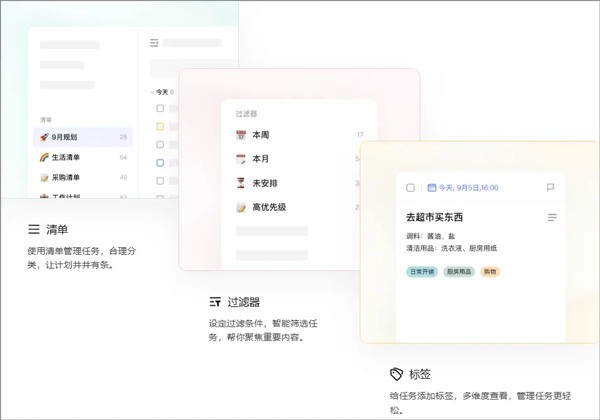 4、支持清单、标签和优先级管理,任务分类和排序更加灵活有序。