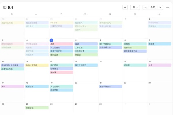 5、日历视图直观,拖动任务即可调整时间,让日程规划更加灵活自然。