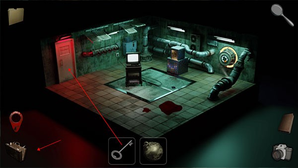 3、打开界面左下角的背包,选择钥匙并解锁房门,穿过走廊便能进入下一个房间。