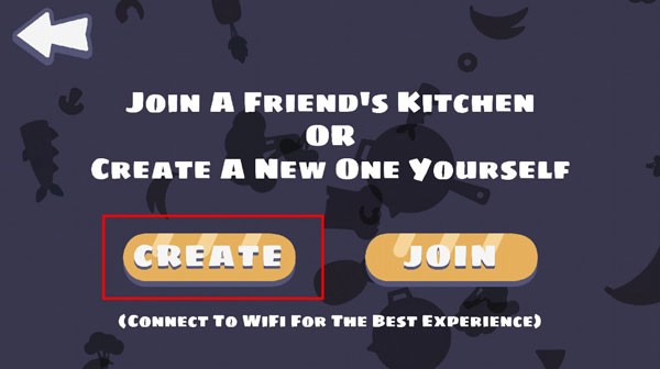 2、选择「CREATE」,系统会生成6个食材图标作为房间码;将图标分享给朋友,等待他们加入即可开始游戏。
