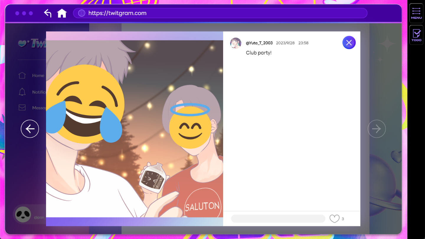 2)之后,您将返回 Twitgram 页面,使用 Sena 帐户为 Ending 4 发帖